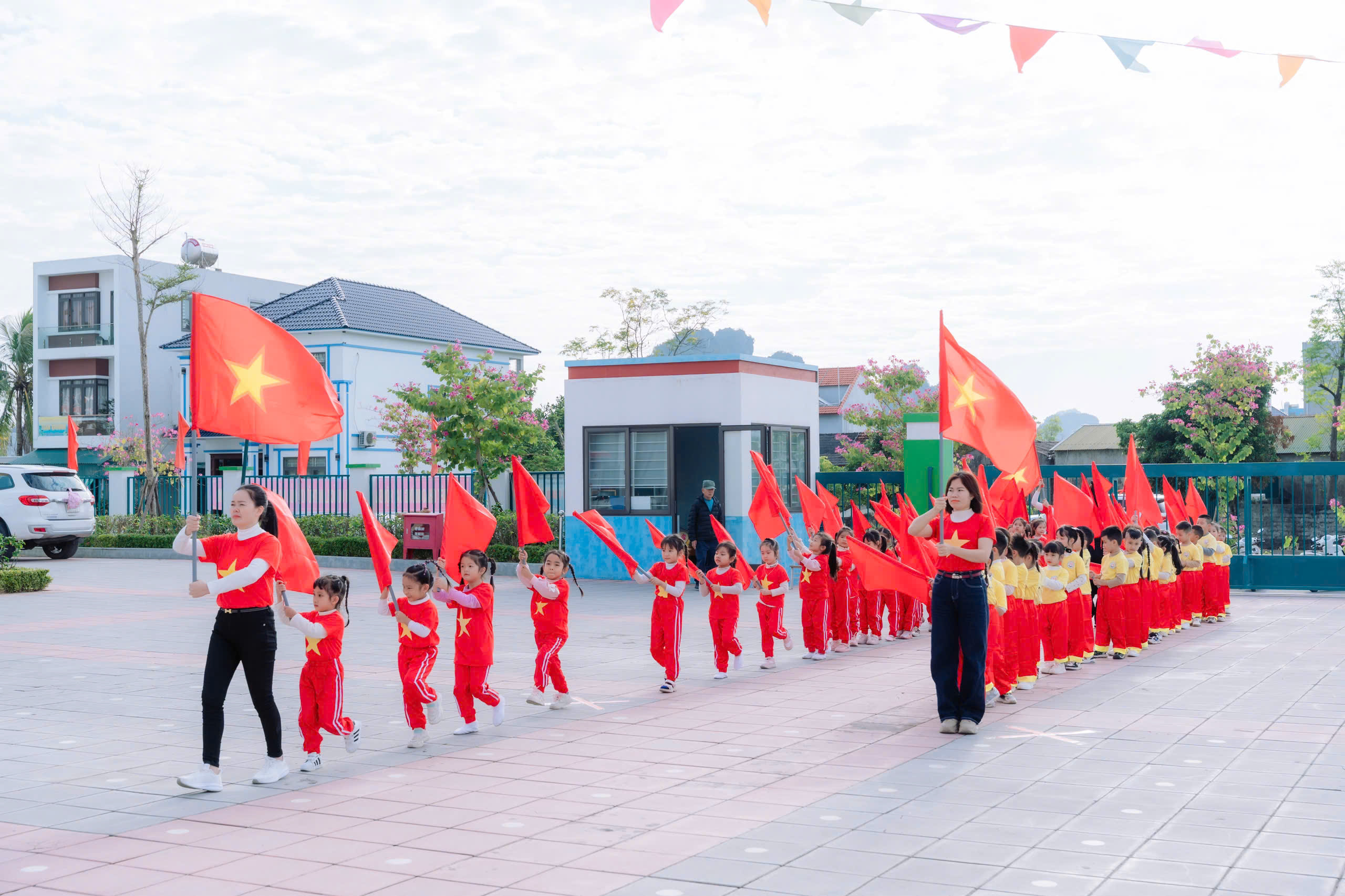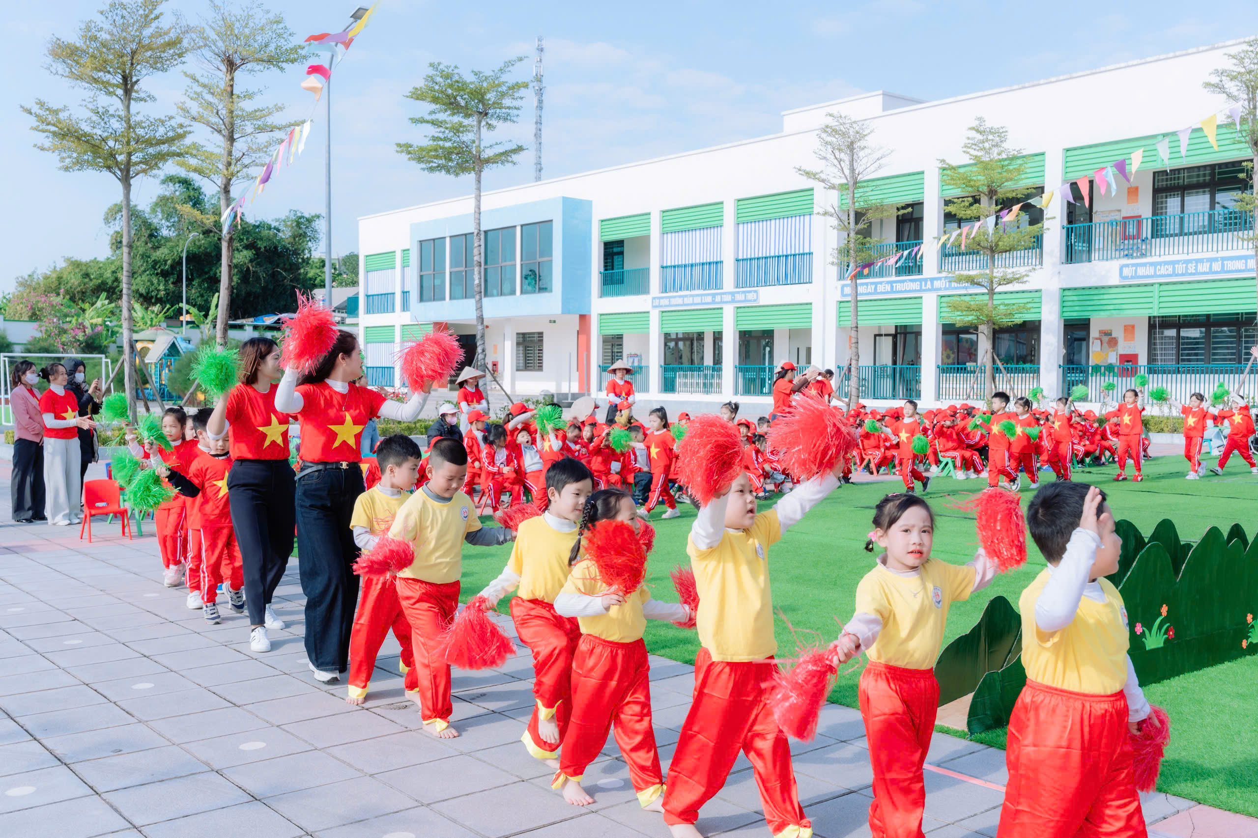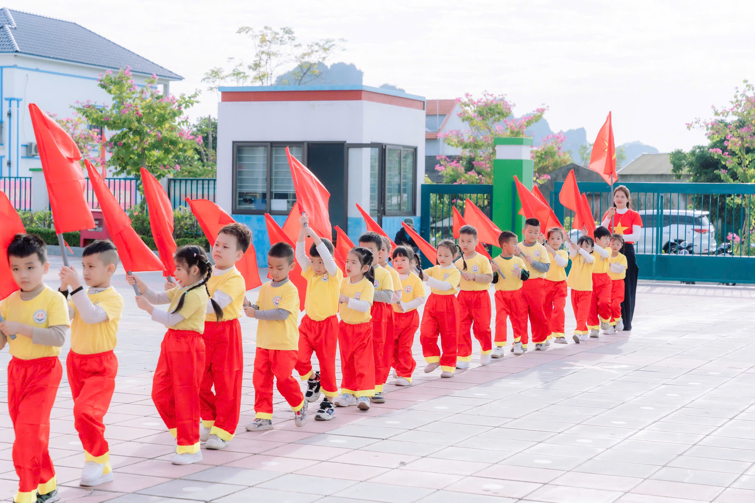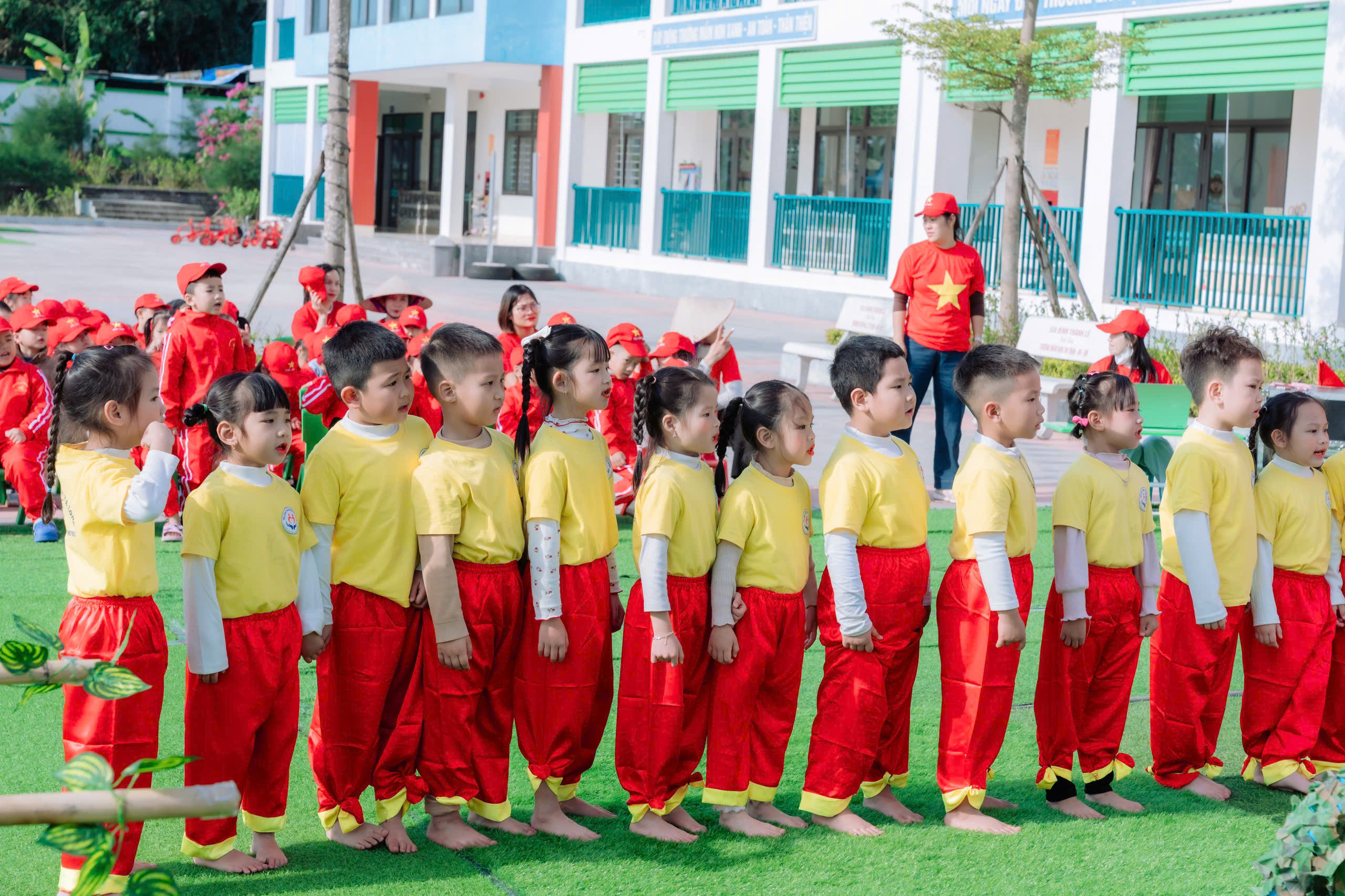 Những bước chân tự tin, đội hình ngay ngắn cùng nụ cười rạng rỡ đã thể hiện tinh thần đoàn kết, sự nhanh nhẹn và lễ phép của các bé.