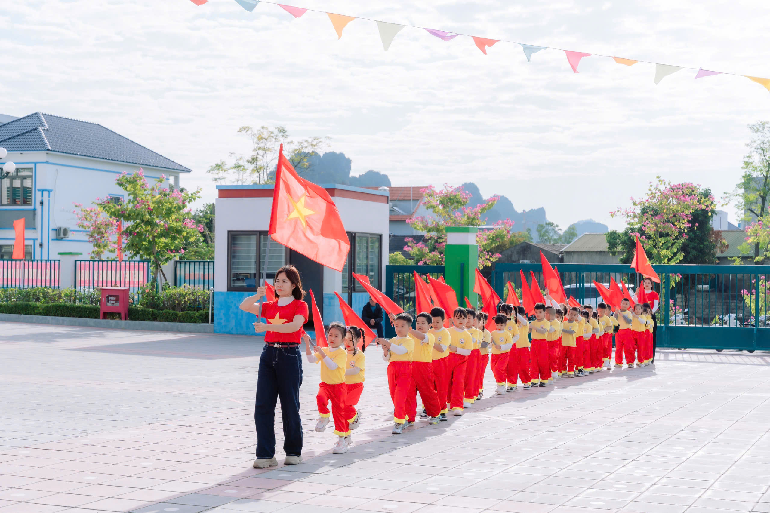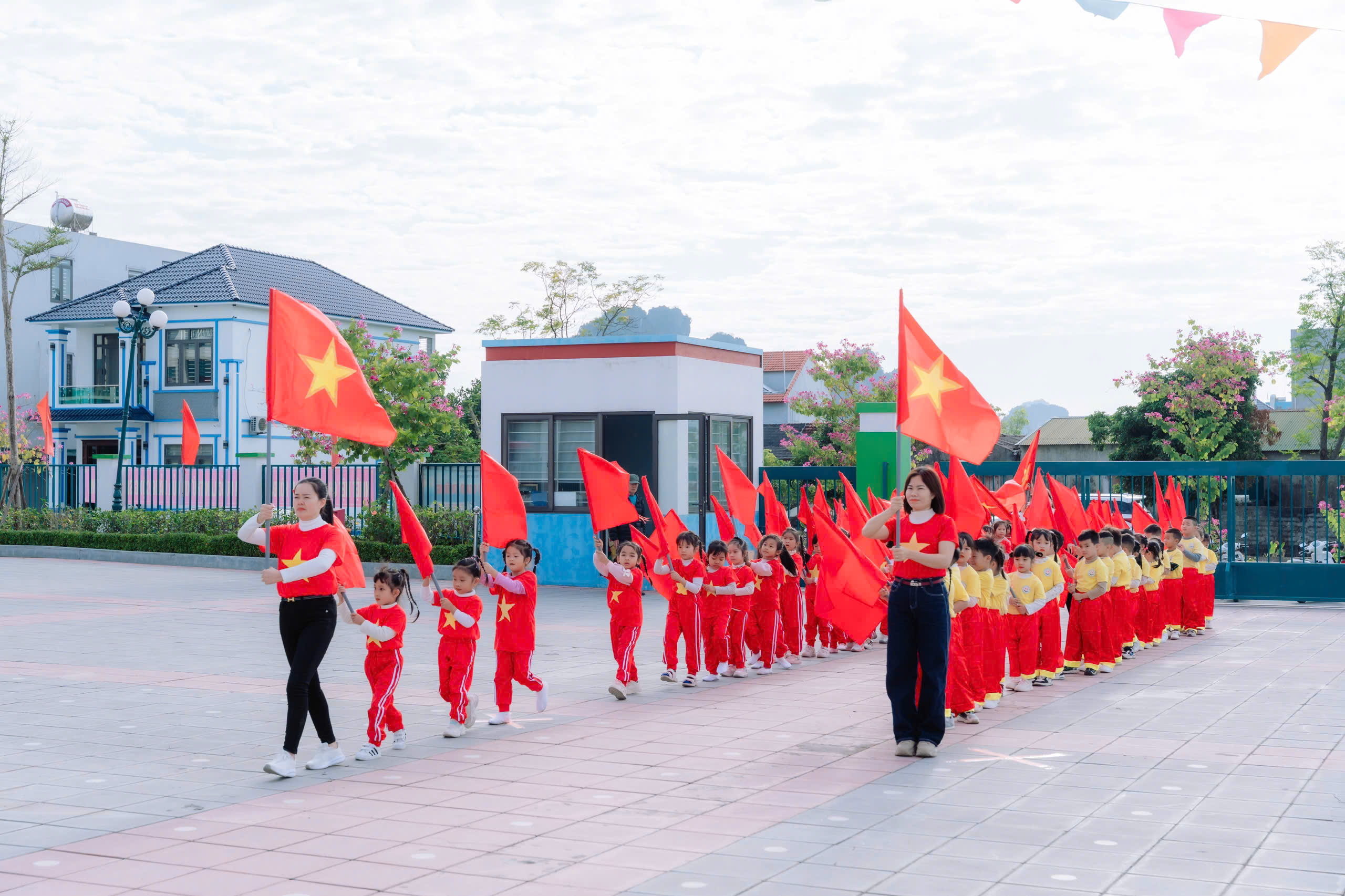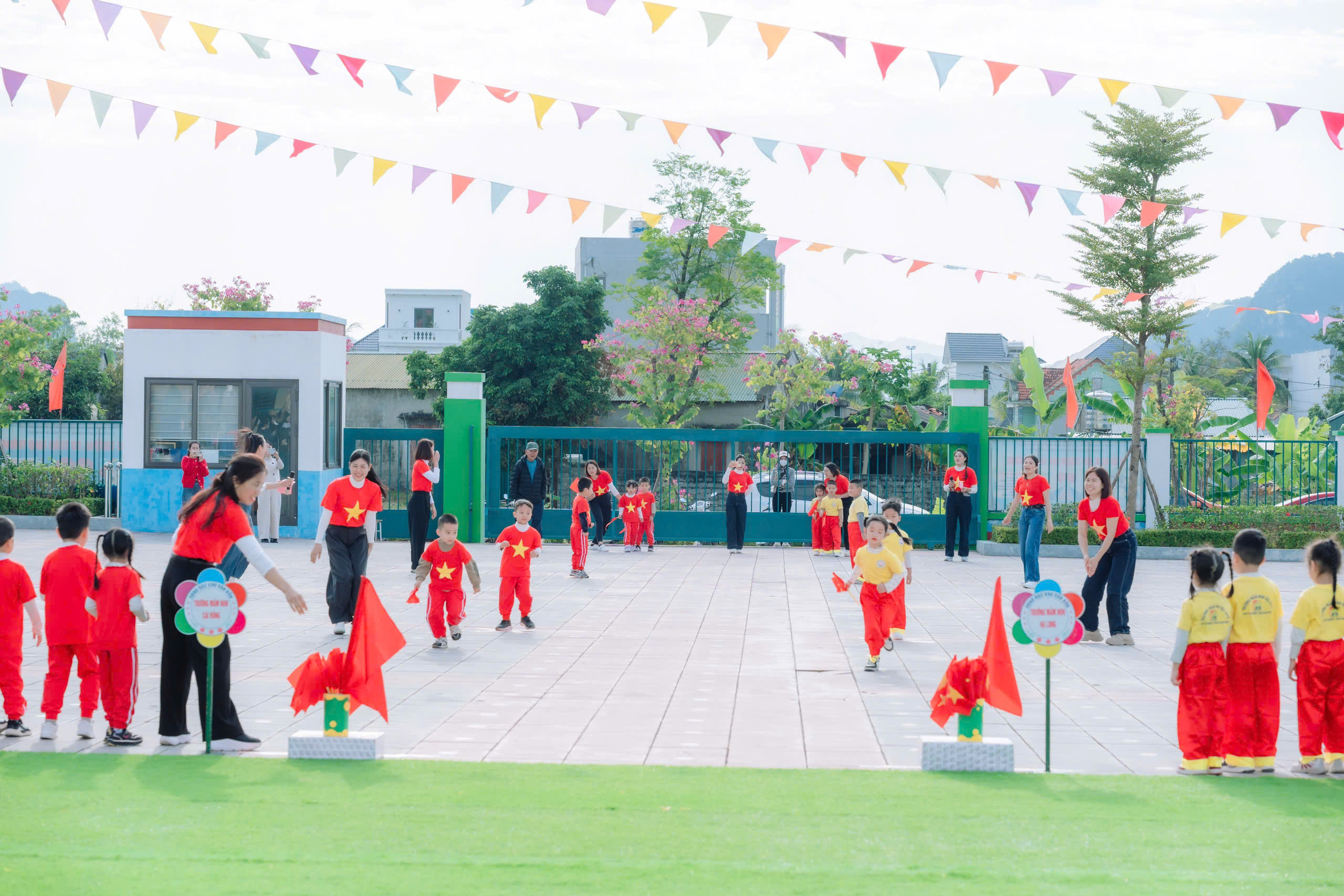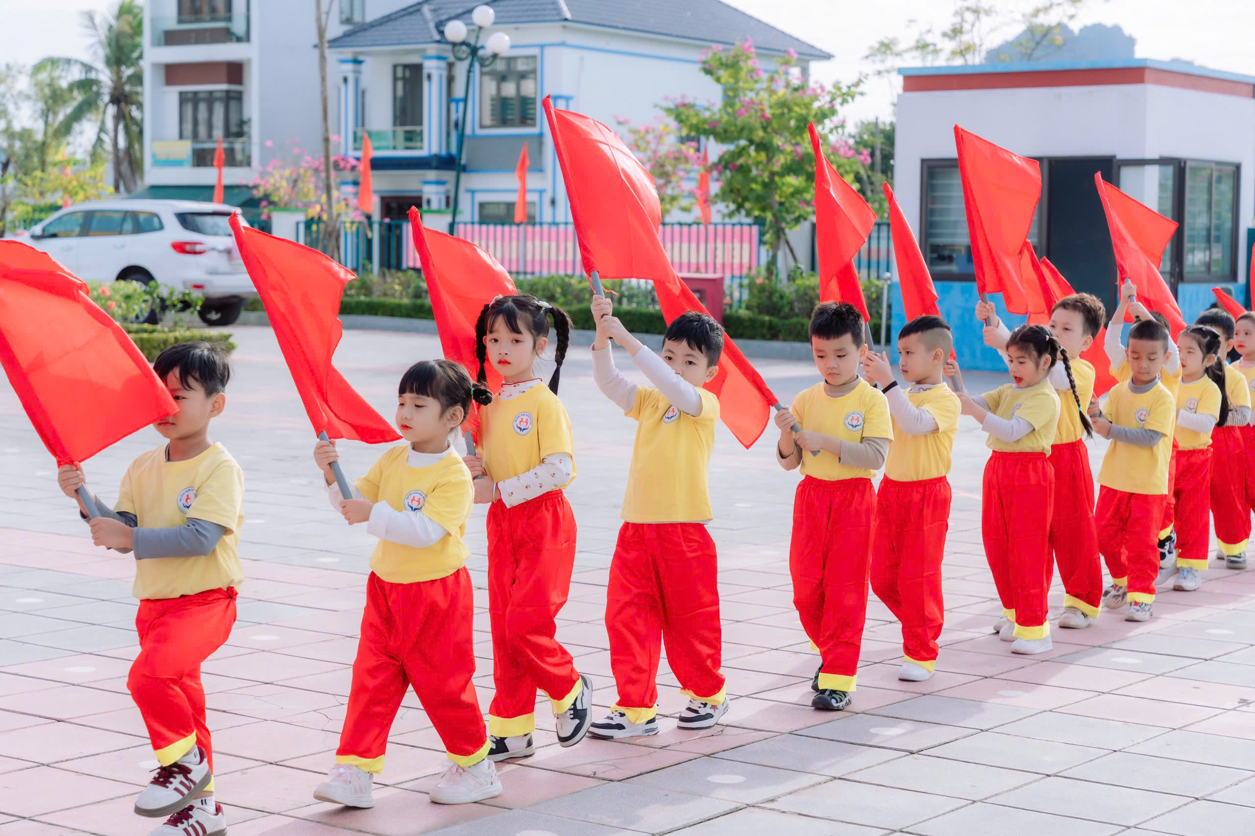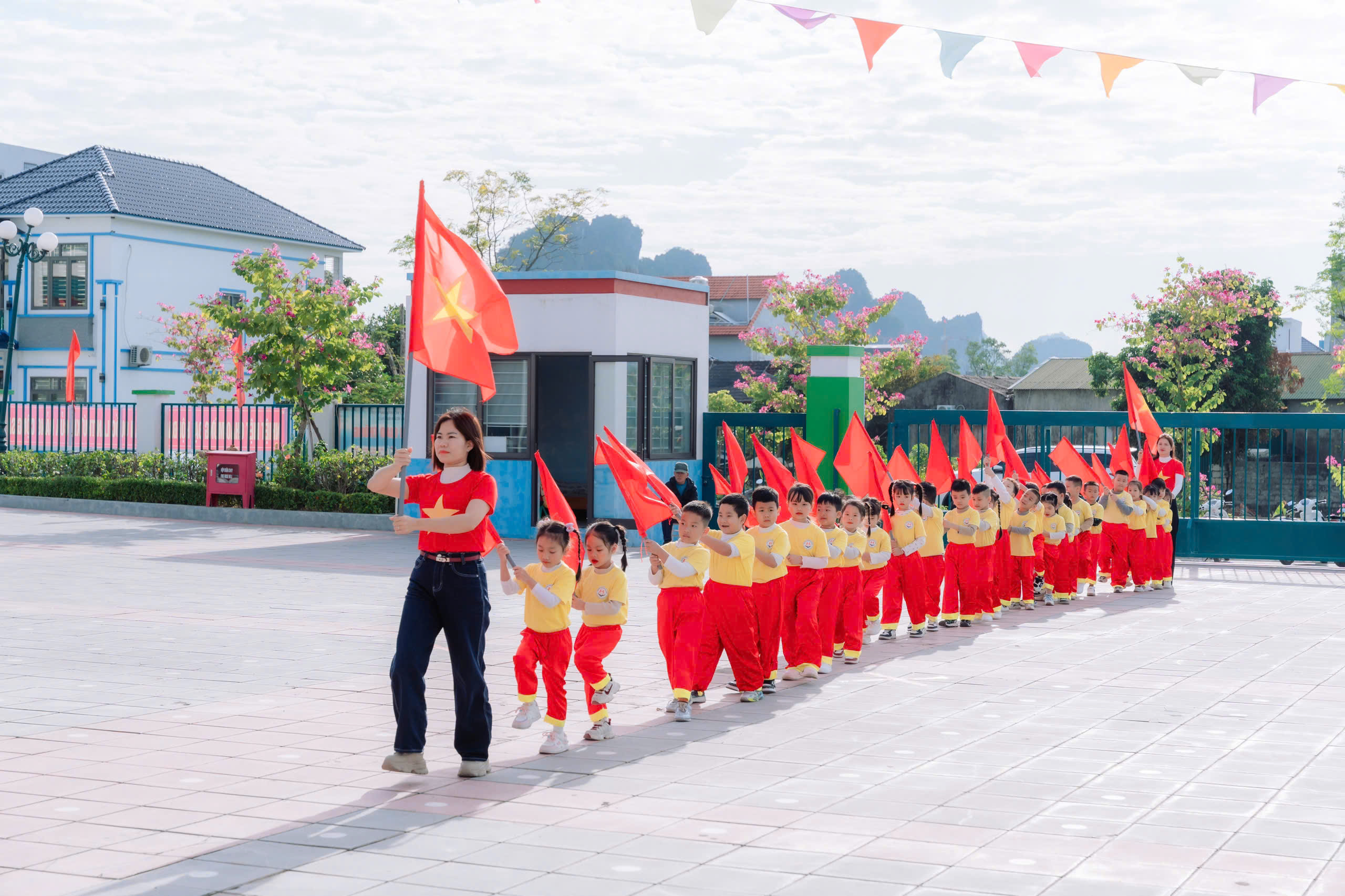 Những bước chân tự tin, đội hình ngay ngắn cùng nụ cười rạng rỡ đã thể hiện tinh thần đoàn kết, sự nhanh nhẹn và lễ phép của các bé.