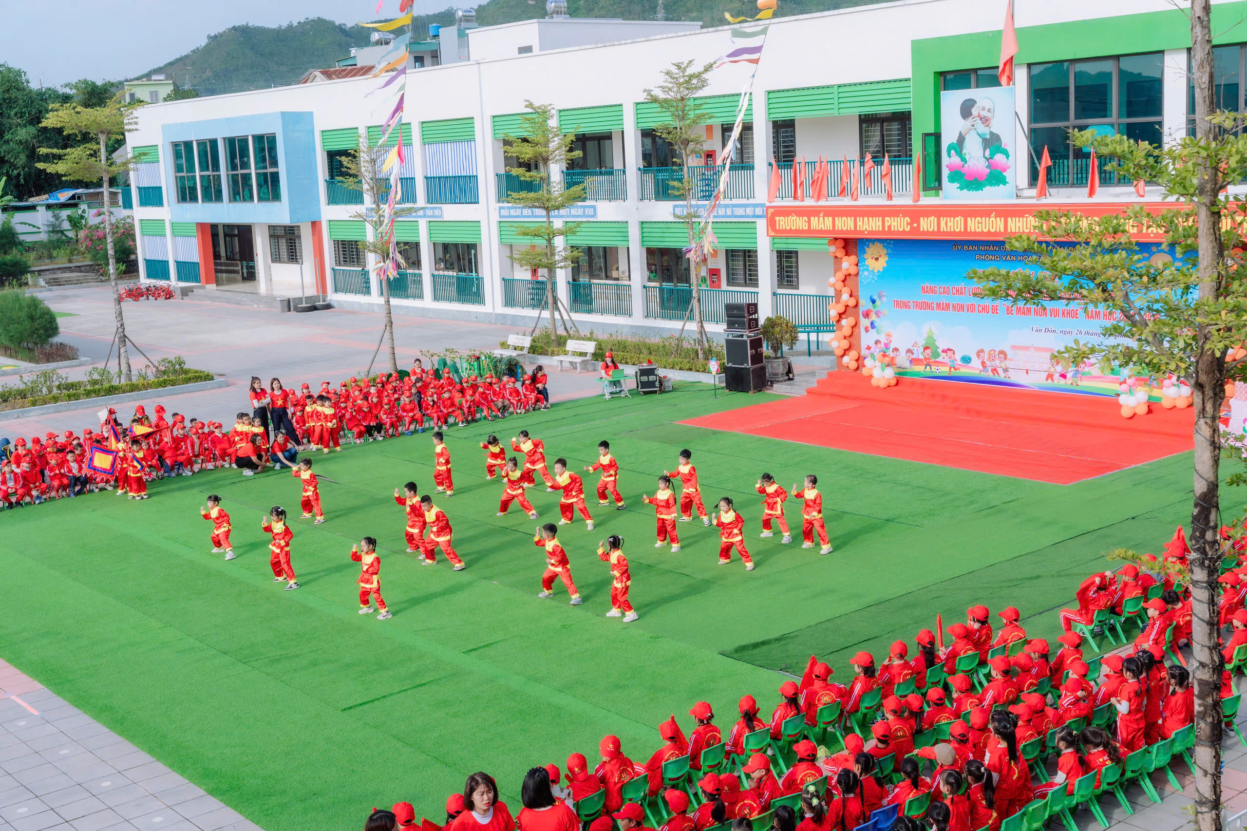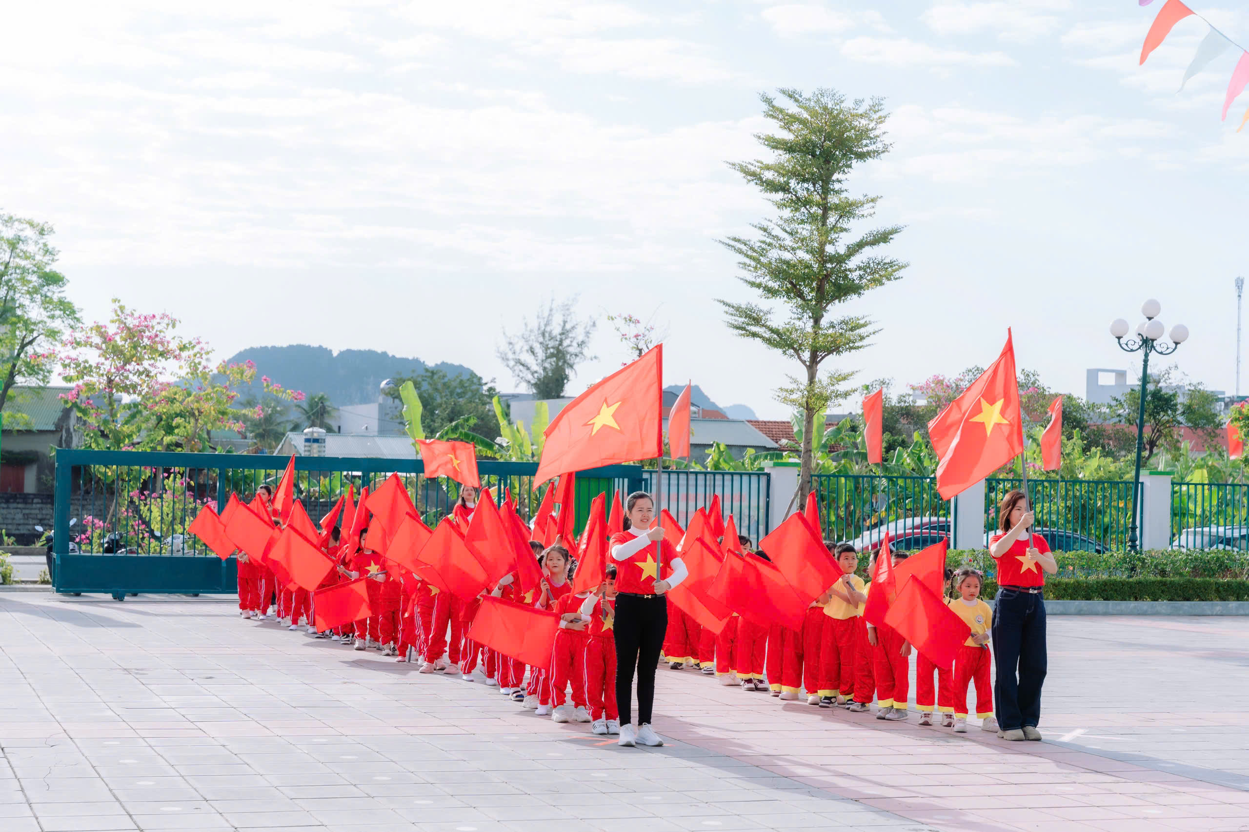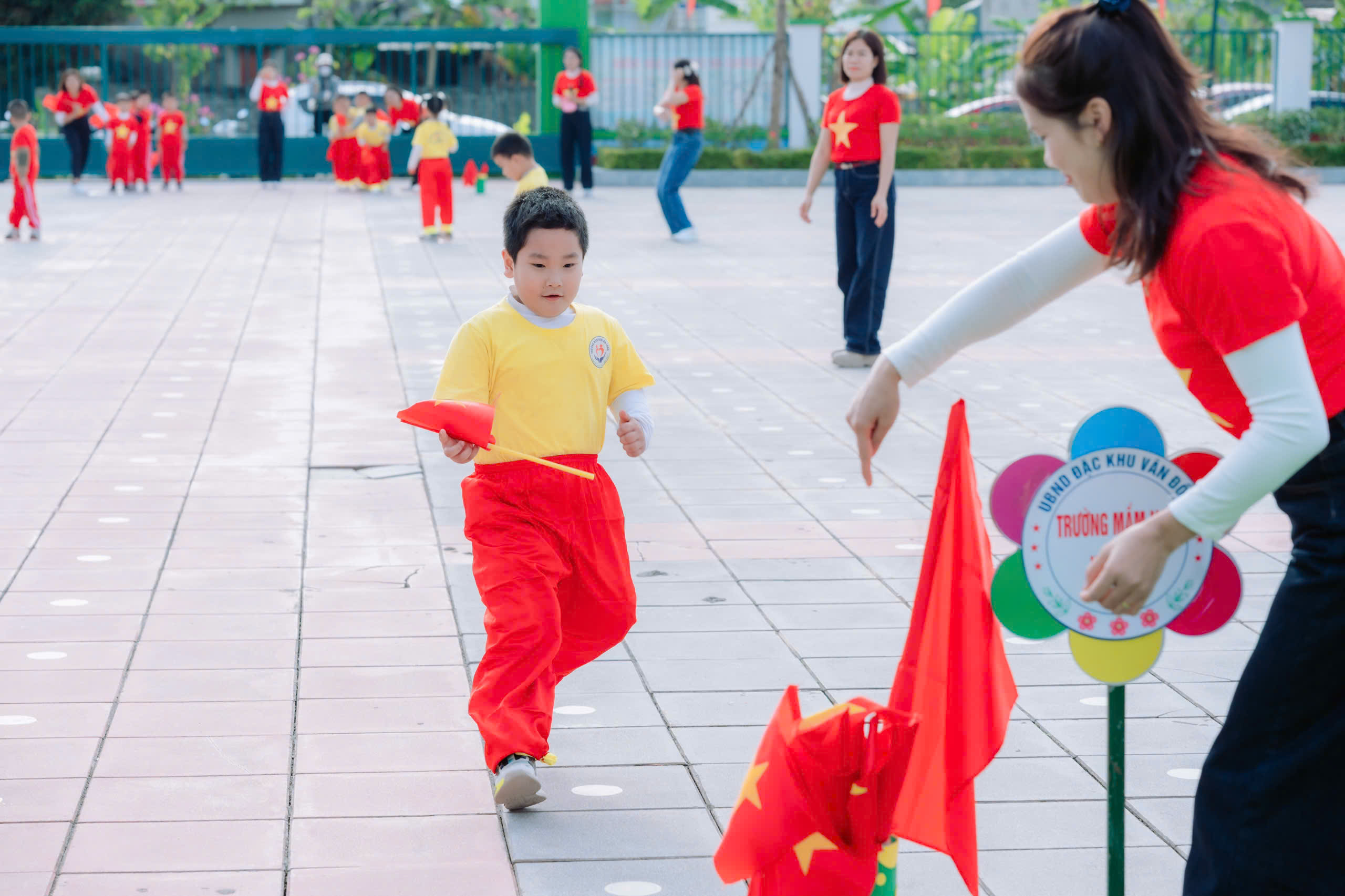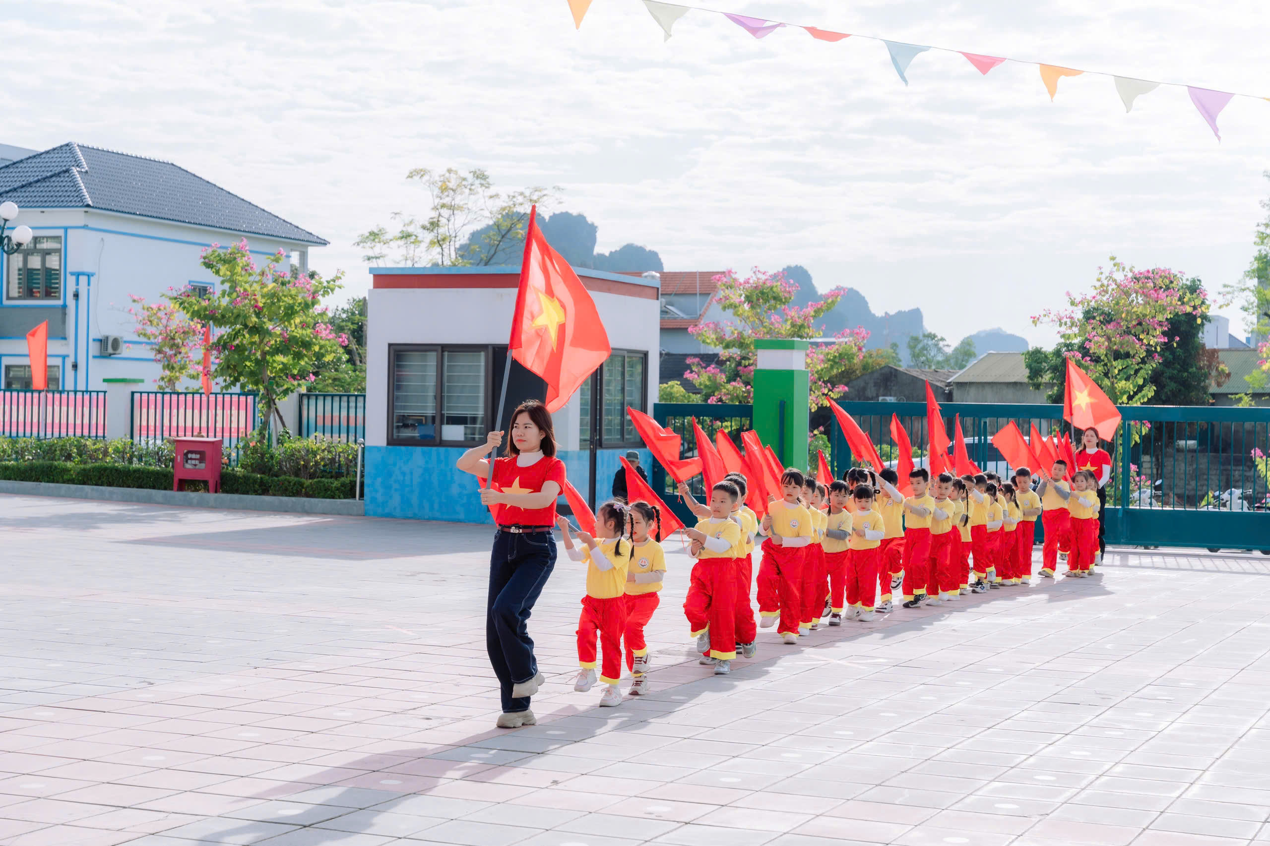 Những bước chân tự tin, đội hình ngay ngắn cùng nụ cười rạng rỡ đã thể hiện tinh thần đoàn kết, sự nhanh nhẹn và lễ phép của các bé.