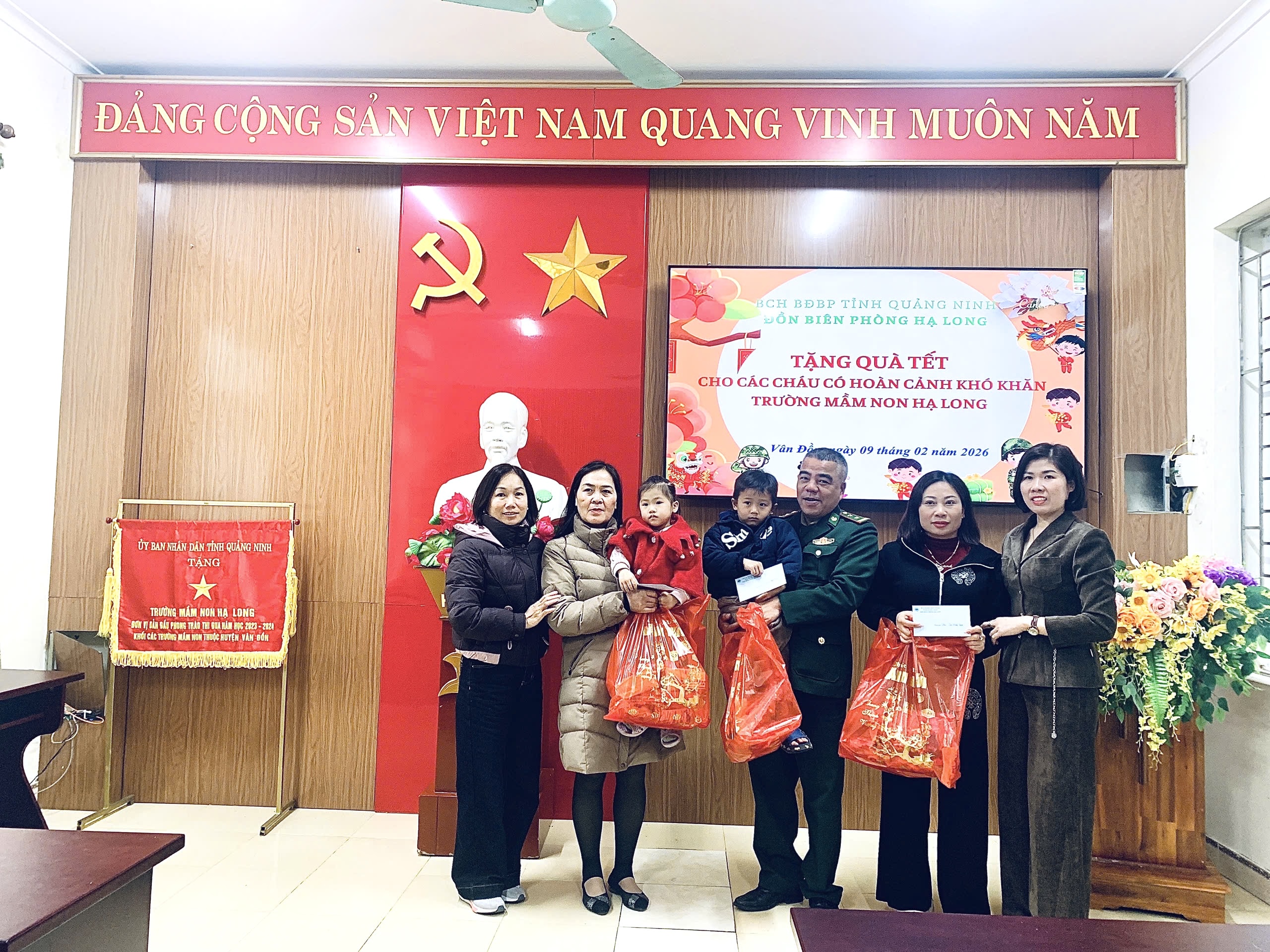 Trong không khí rộn ràng chuẩn bị đón Tết cổ truyền của dân tộc, trường mầm non Hạ Long vô cùng vinh dự và xúc động được đón tiếp các đơn vị kết nghĩa gồm phòng Chính trị thuộc Phòng thủ khu vực 3, phòng Hậu cần kỹ thuật Lữ đoàn 169 Hải quân, đồn Biên phòng 20…. đến thăm, chúc tết và trao quà cho nhà trường cùng các cháu học sinh có hoàn cảnh khó khăn.