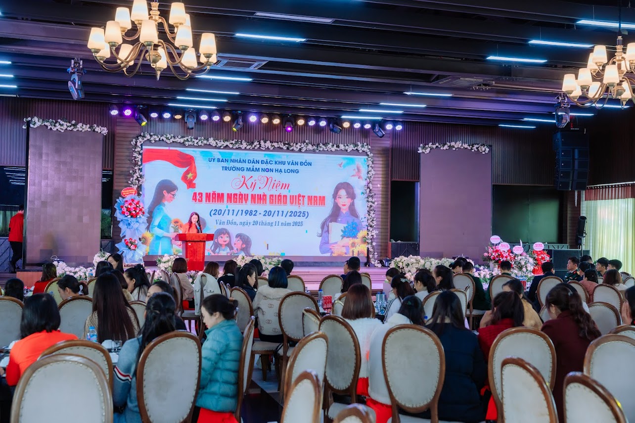 🎄🎄🎄Lễ Kỷ niệm 43 năm Ngày Nhà giáo Việt Nam (20/11/1982 – 20/11/2025) là dịp đặc biệt để tôn vinh và tri ân sâu sắc những cống hiến thầm lặng của các thế hệ nhà giáo – những người đang kiên trì ươm mầm tri thức, vun đắp cho sự nghiệp phát triển nguồn nhân lực chất lượng cao của ngành giáo dục đặc khu Vân Đồn và Đất nước.          👇🏻 Dưới đây là một số hình ảnh của chương trình kỉ niệm 43 năm ngày Nhà giáo Việt Nam 20/11.
