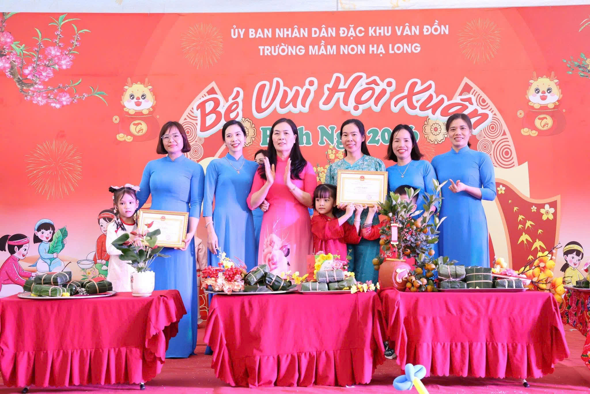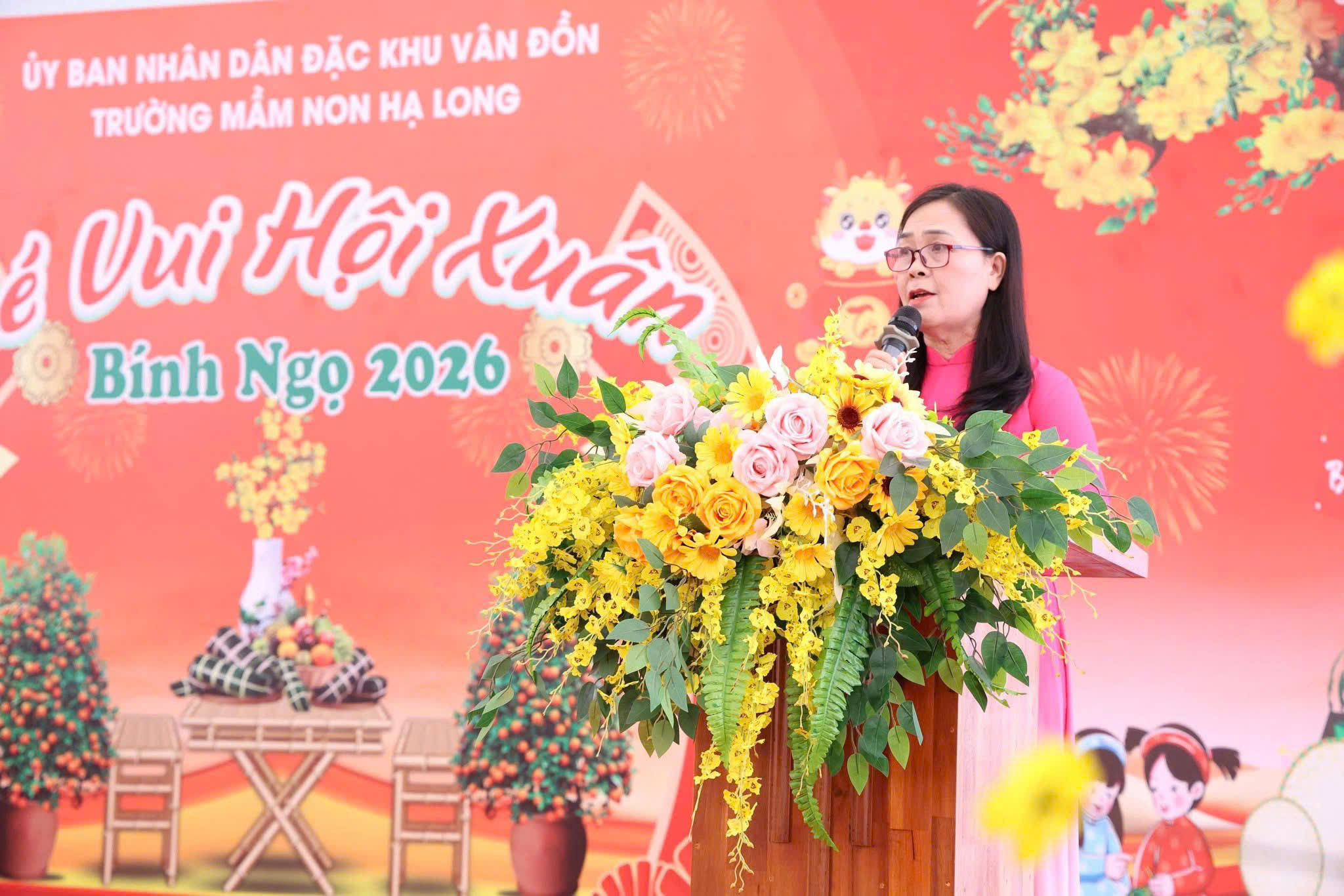 Phát biểu khai mạc tại buổi lễ, cô Phạm Thị Thanh Tâm – Bí thư Đảng bộ, Hiệu trưởng trường Mầm non Hạ Long nhấn mạnh: Tết Nguyên Đán không chỉ là thời khắc chuyển giao năm cũ và năm mới, mà còn là nét đẹp văn hóa tâm hồn của mỗi người dân Việt Nam. Hy vọng rằng những kỷ niệm đẹp về mùi thơm của lá dong, gạo nếp, về sắc màu rực rỡ của cành đào, cành mai hôm nay sẽ trở thành một phần ký ức tuổi thơ tươi đẹp, nuôi dưỡng tâm hồn và tình yêu truyền thống dân tộc cho các con.