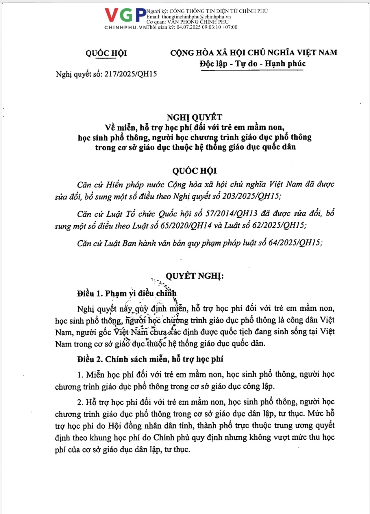 Trường MN thông báo một số nghị quyết về miễn, hỗ trợ học phí đối với trẻ em mầm non, học sinh phổ thông, người học chương trình giáo dục PT trong cơ sở GD thuộc hệ thống GD quốc dân: